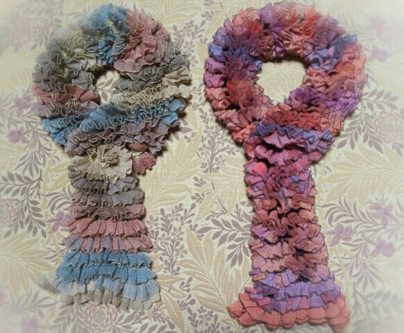 まずはラッフルで編んだショートマフラーです。